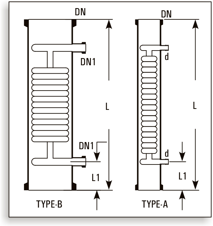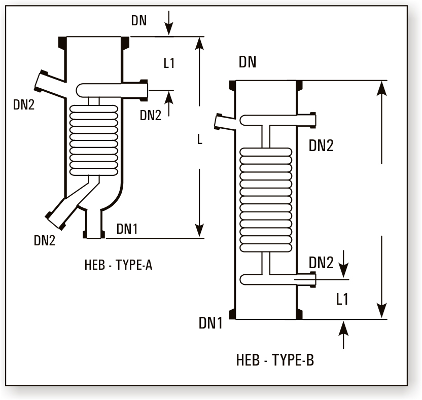 Product coolers are used for cooling of liquids, typically, for the cooling of distillates from the distillation columns. Unlike coil condensers, in product coolers, product travels through the coil battery and coolant through shell. This provides more resident time to the product to be cooled. For direct connection with distillate lines, all the product coolers are provided with 25 DN connections.
