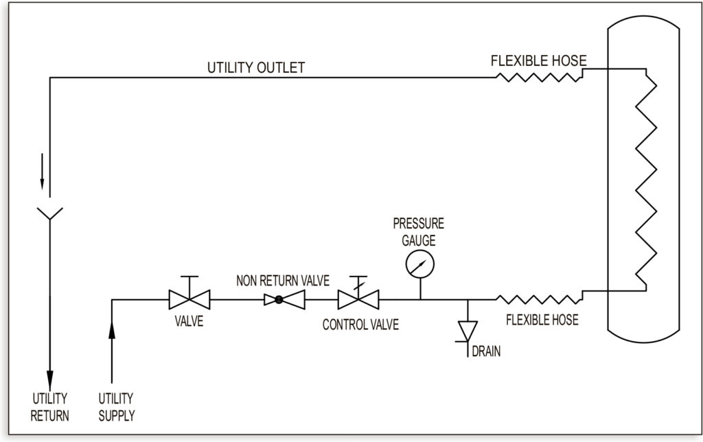 When installing coil type heat exchangers appropriate precautions should be taken. The main points to be taken into account when planning to use these items as coolers are (See also flow chart below).