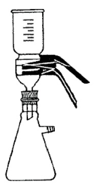 Funnel for 13 & 25 size filter base with sintered disk for 25 size filter spring clamp, 13 & 25 size 100 ml. buchner flask with cork | 1 | D |