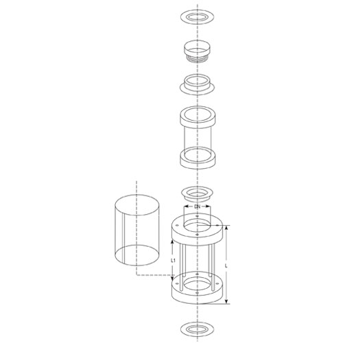 A sight glass consists of one glass pipe section, one metal frame, a pair of PTFE bushes and washers and an acrylic cover. Borosilicate pipe section is highly heat resistant, has excellent chemical resistance and has low thermal expansion. Metal frame is composed of two flanges which are welded with studs so that the stresses and vibrations of the pipeline do not transfer to the glass pipe section. Its check nut keeps the glass pipe section in compression and provides ease in replacement.