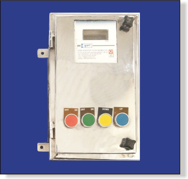 A 1400 RPM 3 Phase flameproof motor coupled with reduction gear is supplied along with a flexible shaft. Motor is mounted on a metal base frame, which is designed to install easily with a Glass Assembly.