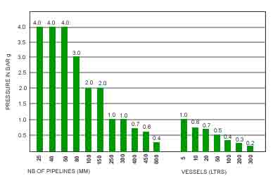 In order to allow for the spread of breaking stress, a large factor of safely is applied when determining the wall thickness requirement to allow operation up to values given in the table of working pressure.